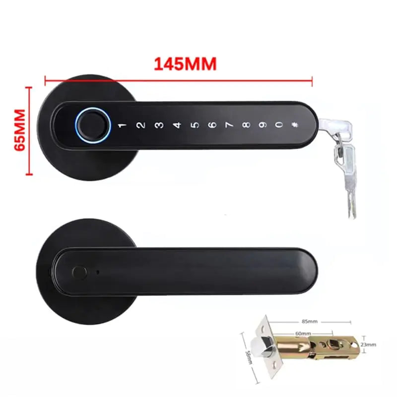 Keyless Security Door Handle—a sleek and innovative solution to elevate your home security while simplifying your daily routine. Say goodbye to the hassle of traditional keys and hello to effortless access with our state-of-the-art door handle. Crafted with premium materials and cutting-edge technology, our keyless door handle offers unparalleled security and convenience. No more fumbling for keys or worrying about lost or stolen copies—simply enter your custom code or use the integrated fingerprint scanner to unlock your door with ease. Designed to seamlessly integrate with any modern home decor, our door handle boasts a sleek and minimalist design that enhances the aesthetic appeal of your entryway. Its durable construction ensures long-lasting performance, providing peace of mind for you and your loved ones. With multiple access options, including PIN codes, fingerprints, and even smartphone connectivity, you have full control over who enters your home at all times. Plus, with features like auto-locking and tamper alerts, you can rest easy knowing your home is protected around the clock. Upgrade your home security and simplify your life with the Keyless Security Door Handle. Experience the ultimate blend of style, convenience, and peace of mind every time you enter your home.
